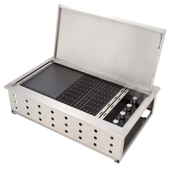 The Gasmate Orion 4 Burner Flush Mount Drop-in BBQ allows you to enjoy all the features of a Gasmate BBQ but be incorporated into any custom designed outdoor kitchen. You can even create a BBQ island that you can cook with from both sides with the removable lid taken off when cooking.