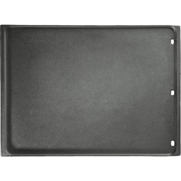 The Cast Iron Reversible Griddle for Pro 500, Prestige 500 and LEX grills adds an extra dimension to the cooking options available on your gas barbecue. By simply replacing the cooking grids or just resting the griddle on top of the grill caramelised onions, mushrooms, cooked bacon, perfect potatoes and so much more can be added to the menu either as sides or as the main meal itself. The convenient little holes on the top allow grease to drain away from your food for the crispiest bacon and succulent sausages, and you can toast your favourite sandwiches on the reverse side of the griddle.
