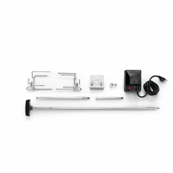 Whether you have a compact Rogue® 365, 425, or a large Rogue® 525, 626 Series Model, this Stainless Steel, Heavy Duty, Multi-Piece Rotisserie Kit will fit your needs. Made with food grade stainless steel, the square spit rod features rod extensions to ensure that you can go the distance. The heavy-duty motor can turn up to 12 kilograms of a balanced load. The two four pronged forks will securely hold everything you could wish to spit roast and they tighten securely with easy to use thumb screws.