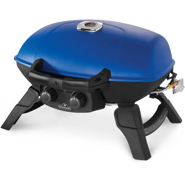The Napoleon TravelQâ„¢ 285 Portable Propane Gas Grill has set a new standard in portable grilling excellence. Don’t let the small size fool you; this grill boasts 285 square inches of total grilling area. That means you can grill up to 18 large hamburgers at once. Two, individually controlled burners provide precise temperature control. Smoke, and roast using indirect heat or sear perfectly over intense heat. You’ll know it’s a Napoleon with the iconic WAVEâ„¢ cooking grids for those distinctive sear marks. The porcelain coated enamel grids will season to a nonstick surface just like a cast iron frying pan. This grill features a cast aluminum body to keep it light and portable and the lid is a stylish blue. The legs fold in providing compact storage and a perfect perch. The removable grease tray slides out for easy cleaning and locks in place when you’re storing and traveling with the grill. Take gourmet grilling on the go with the TravelQâ„¢ 285.