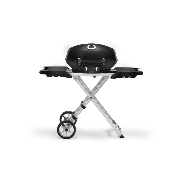The Napoleon Travel Q TQ285X Portable Gas Grill with Scissor Cart, allows you to take your gourmet grilling anywhere, on any terrain. The grill is fixed to a scissor cart that folds down for easy upright storage and you can even hang it on a wall. Whether tailgating, picnicking, adventuring, or just relaxing at home, the Travel TQ285X portable gas grill is a perfect grill for all kinds of meals. The porcelain coated cast iron cooking grids that heat evenly, provide a non-stick surface for your food and season like a cast iron skillet.
