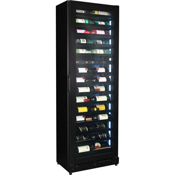Upright Super Slim Depth Quiet Running Glass Front 2 Zone Wine Fridge With 5 x LED Colour Options
