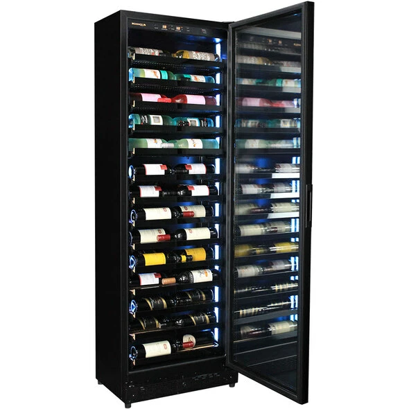 Upright Super Slim Depth Quiet Running Glass Front Wine Fridge With 5 x LED Color Options